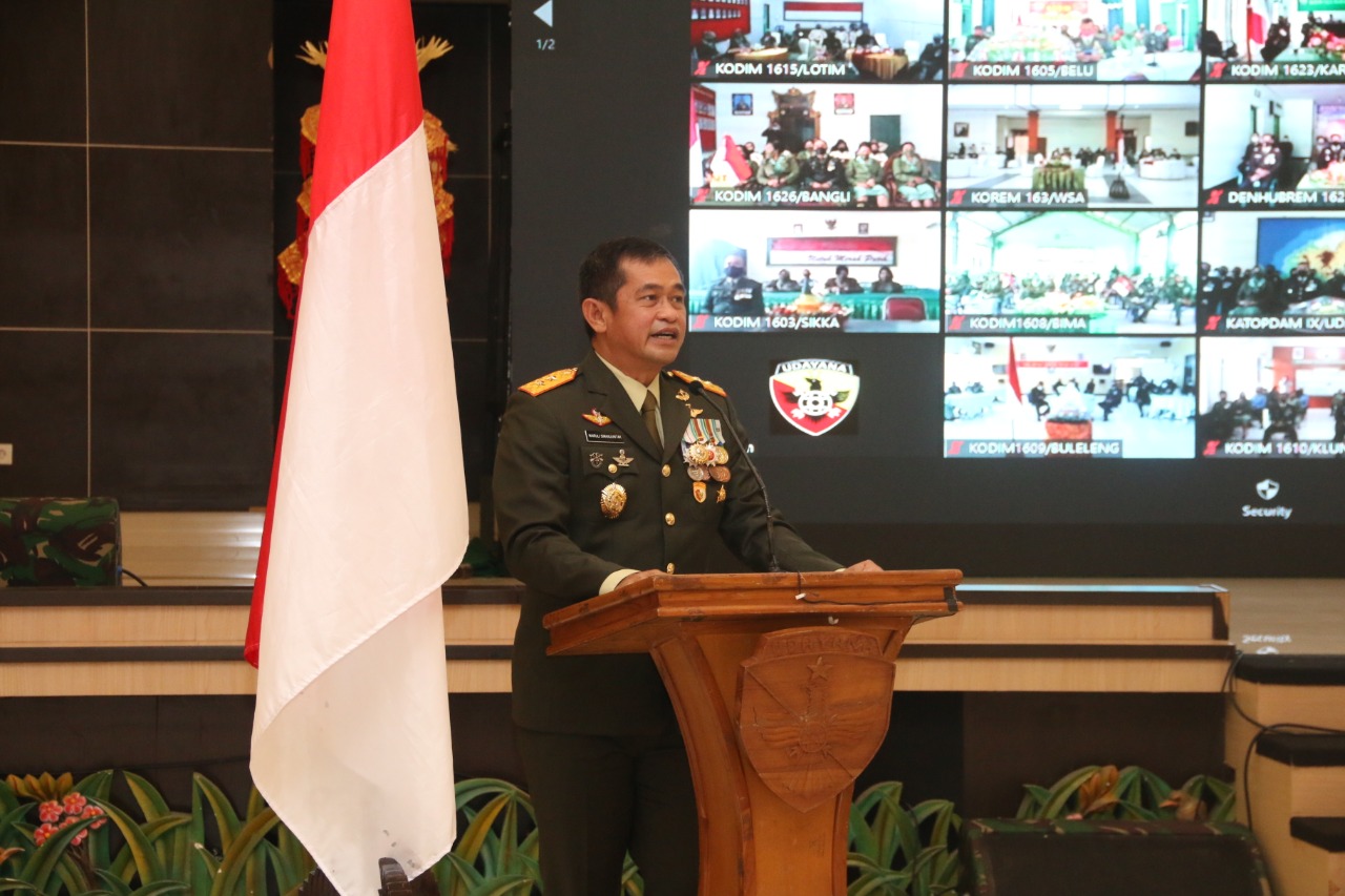 Mengawali sambutan, Pangdam IX/Udayana menyerukan kata ‘Merdaka’, selanjutnya menyampaikan bahwa dirinya sangat bersyukur karena selama pengabdiannya di TNI sudah hampir 250 kabupaten/kota yang sudah pernah dikunjungi, khususnya di Indonesia.