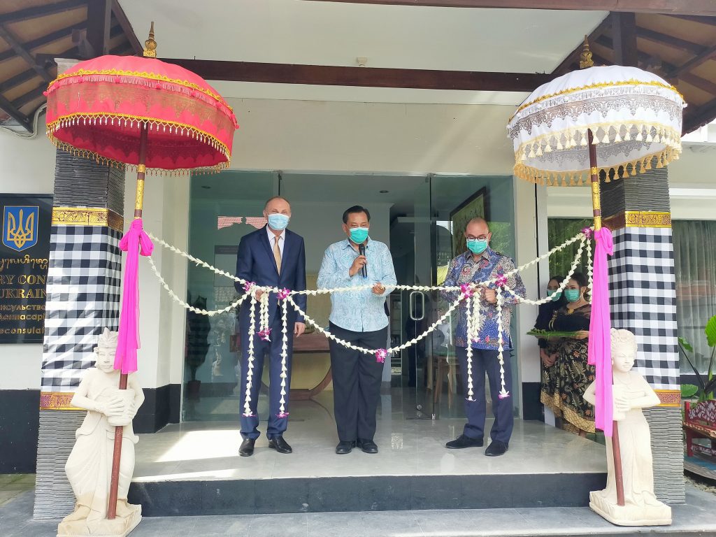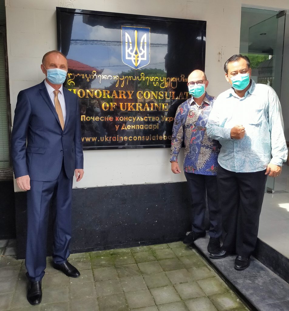 Berselang beberapa hari setelah penyerahan Surat Exequatur, Yang Mulia Duta Besar Ukraina untuk Indonesia melakukan kunjungan resmi ke Bali, Jumat (27/11) untuk meresmikan kantor Konsul Kehormatan di Bali dan mengukuhkan I Nyoman Astama sebagai Konsul Kehormatan Ukraina untuk Bali.