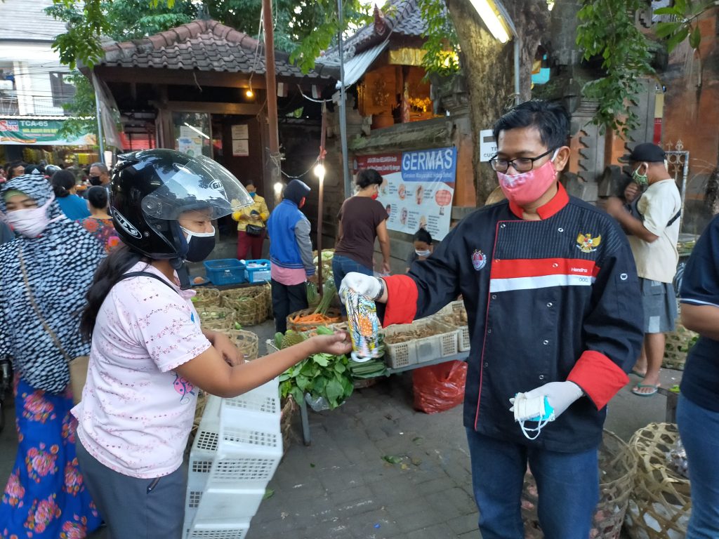 Pada kegiatan tersebut dibagikan sebanyak 1000 masker kain dan 500 botol cairan desinfektan yang dibagikan di dua lokasi Pasar yaitu di Pasar Sanglah dan Pasar Dalung.