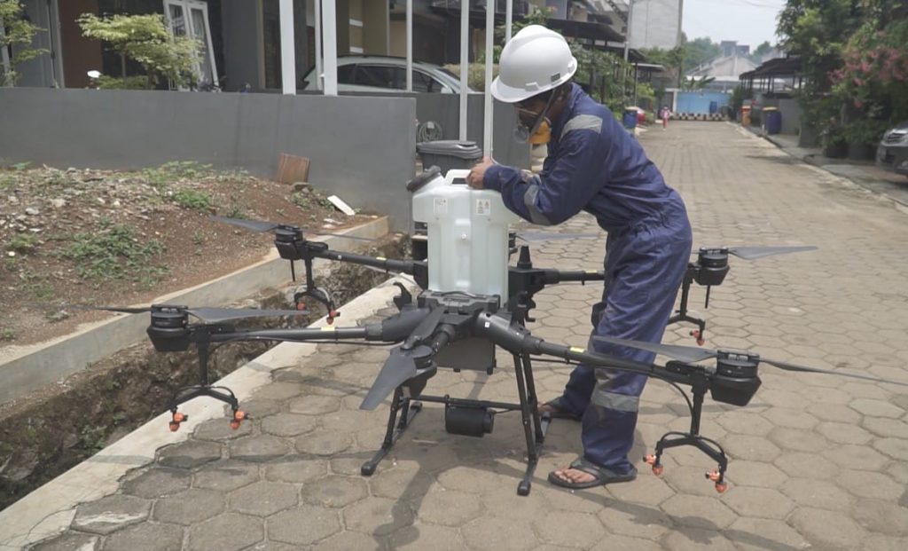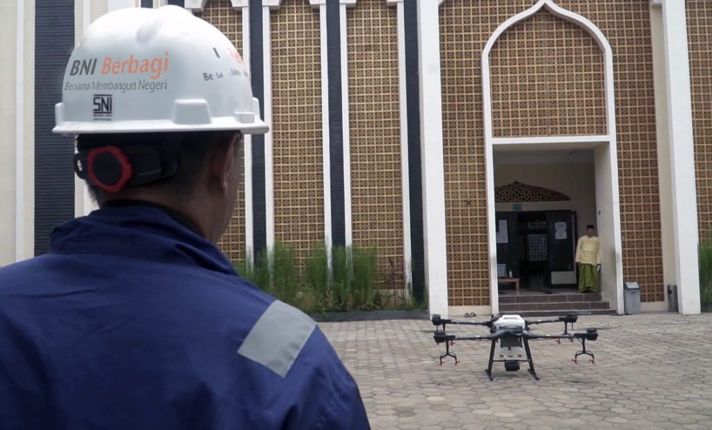 Untuk melakukan sterilisasi secara luas, BNI akan menerbangkan _drone_ yang menyemprotkan disinfektan standar Badan Kesehatan Dunia (WHO). _Drone_ akan diterbangkan di 50 titik area permukiman di Jabodetabek. Jangkauan _drone_ mencapai 10.000 m² di tiap titik.