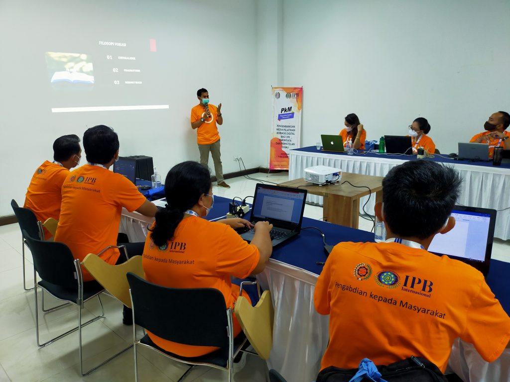 Seluruh peserta PKM diwajibkan mengikuti workshop selama tiga kali pertemuan atau selama 18 jam sesuai dengan materi yang diberikan. Pertemuan pertama para peserta mendapatkan materi dan pemahaman mengenai pembelajaran menggunakan media digital. Pertemuan kedua para peserta akan diminta membuat Project atau contoh media pelatihan berbasis digital sebagai bahan pengajaran nantinya. Pertemuan ketiga, Project dari seluruh peserta akan dinilai dan dievaluasi serta dilakukan penyempurnaan jika diperlukan sehingga dapat dibawa ke daerahnya masing-masing.