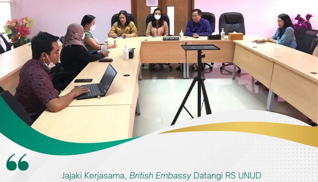 Pada kesempatan tersebut, Prof. Purwa Samatra menyampaikan fasilitas dan layanan yang tersedia di RS UNUD, salah satunya adalah layanan Medical Check Up (MCU) yang dapat dimanfaatkan untuk pemeriksaan kesehatan secara komprehensif. Diharapkan melalui awal kerjasama ini, British Embassy berkomitmen akan mengarahkan WNA ke RS UNUD bila memiliki masalah kesehatan.