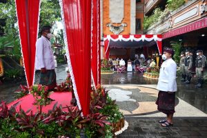 Sebagai Inspektur Upacara, Wali Kota Denpasar, IGN. Jaya Negara. Hadir dalam kesempatan tersebut Wakil Wali Kota Denpasar, I Kadek Agus Arya Wibawa, Ketua DPRD Kota Denpasar Gusti Ngurah Gede, Ketua Tim Penggerak PKK Kota Denpasar Ny. Antari Jaya Negara, Wakil Ketua TP PKK Denpasar, Ny. Ayu Kristi Wibawa, Ketua Gatriwara Ny. Ngurah Gede, Pj. Sekda Kota Denpasar, Made Toya, Forkopimda, Pimpinan OPD serta perwakilan masyarakat dengan jumlah peserta yang sangat terbatas.