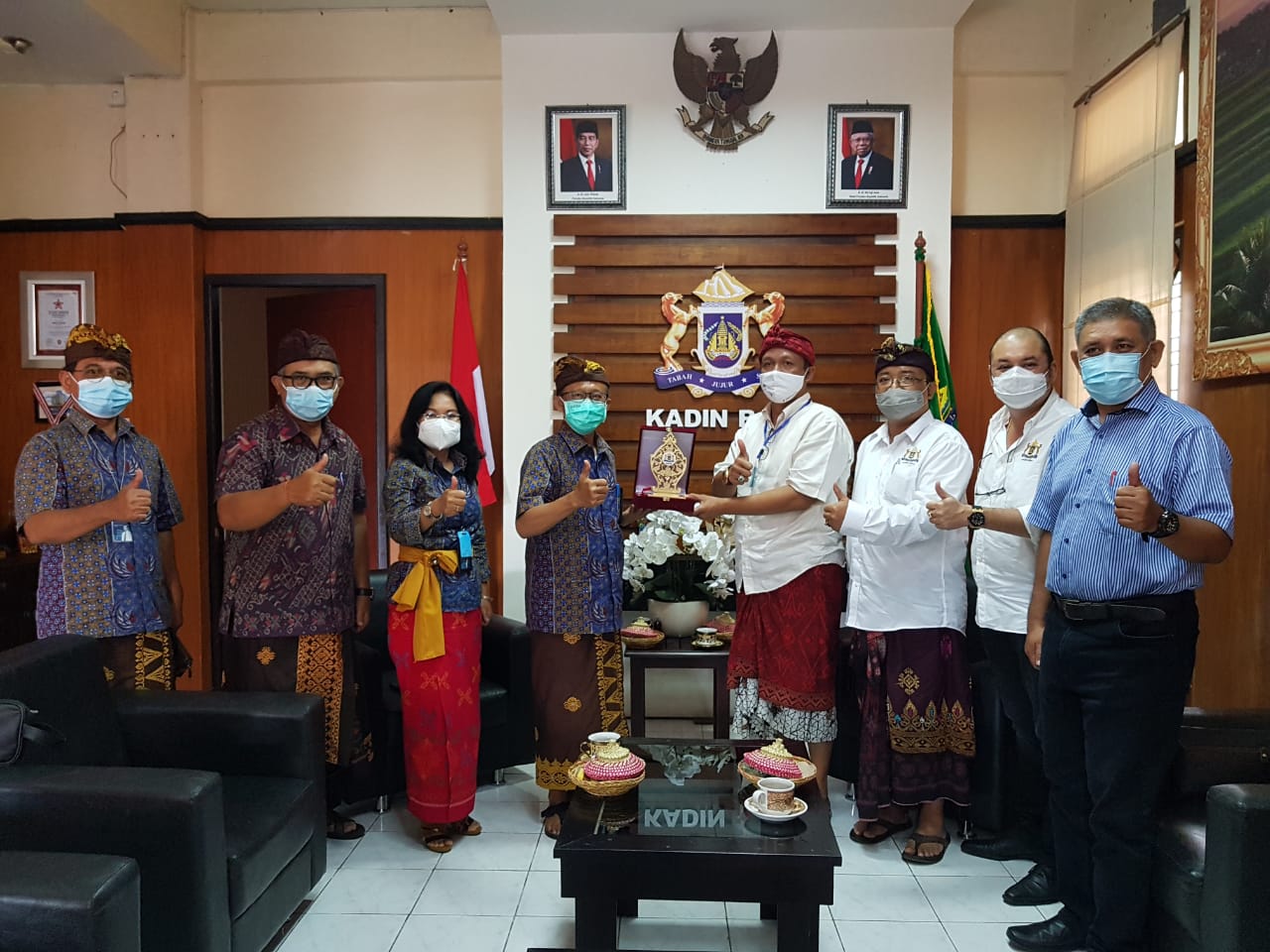Adi Priyanto diterima langsung oleh Ketua Umum KADIN Bali Made Ariandi, didampingi Wakil Ketua Umum Bidang Energi dan Kelistrikan Drs. I Gusti Ketut Sukrba, MM. Ikut pula mendampingi Dr. (C) I Made Ramia Adnyana, SE., MM Wakil Ketua Umum Bidang Akomodasi dan Pengembangan Pariwisata, Jupiter G.Lalwani, SH Wakil Ketua Umum Bidang Hukum dan Regulasi dan Ir. I Putu Geria Astawa, MBA., MM Komite Tetap Energi Baru Terbaharukan.
