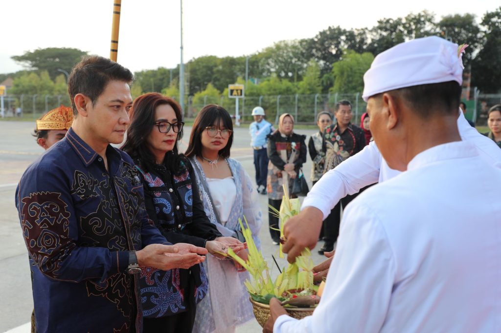 MANGUPURA, lintasbali.com – Resmi menjabat sebagai Kapolda Bali Irjen. Pol. Daniel Adityajaya, S.H., S.IK., M.Si. didampingi Ny. Didit Daniel Adityajaya setibanya di Base Ops Lanud I Gusti Ngurah Rai, langsung disambut dengan prosesi tradisi tepung tawar, Rabu, 31 Juli 2024. Irjen Pol Daniel Adityajaya menggantikan pejabat Kapolda Bali lama Irjen. Pol. Ida Bagus Kd Putra Narendra, S.I.K., M.Si.