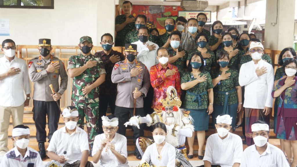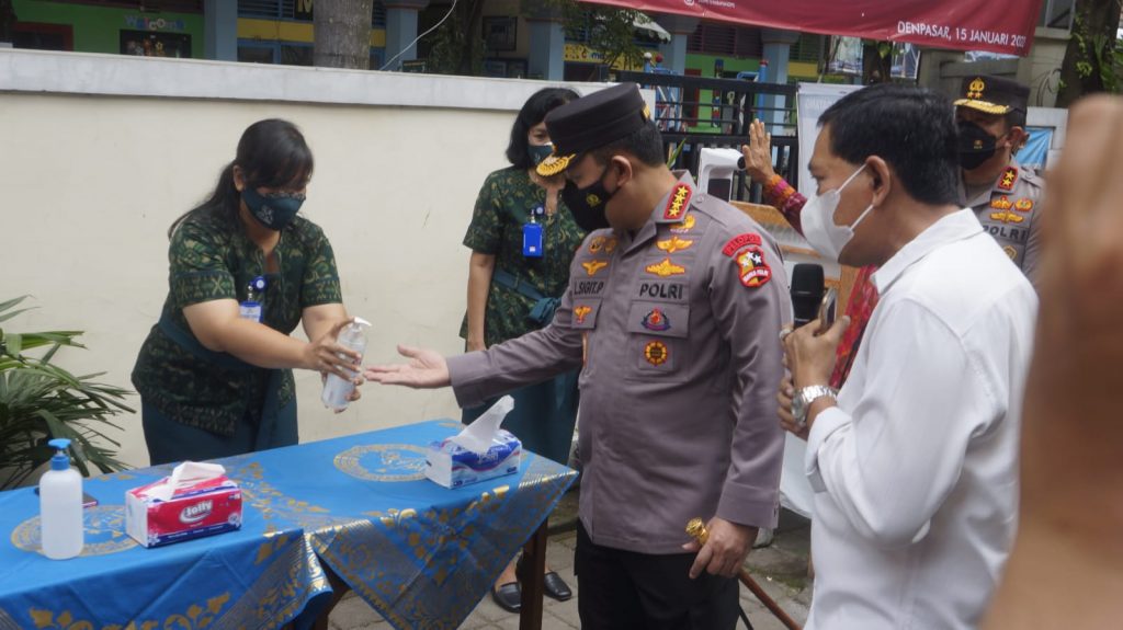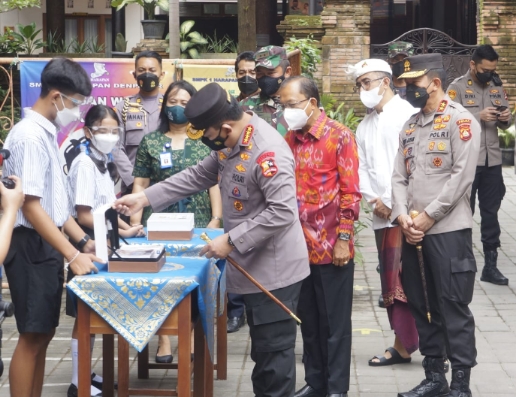 Kapolri Tinjau PTM dan Prokes di SMP Kristen 1 Harapan Denpasar