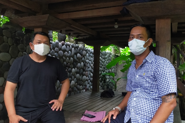 Sony, pemilik Toko Mayang Bali Art Market (kiri-pihak pengadu) bersama Hendi Tri Wahyono (kanan-kuasa hukum pengadu)