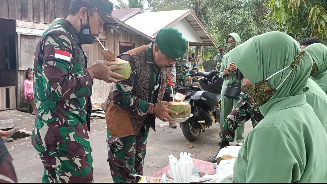 Kapten Inf Suraji mengatakan, untuk menyambut kedatangan Bapak Danrem 1012/Pjg karena cuaca yang sangat panas seperti ini memang sudah kami siapkan air minum mineral dan kelapa muda,semoga bapak Danrem beserta Rombongan berkenan menikmatinya