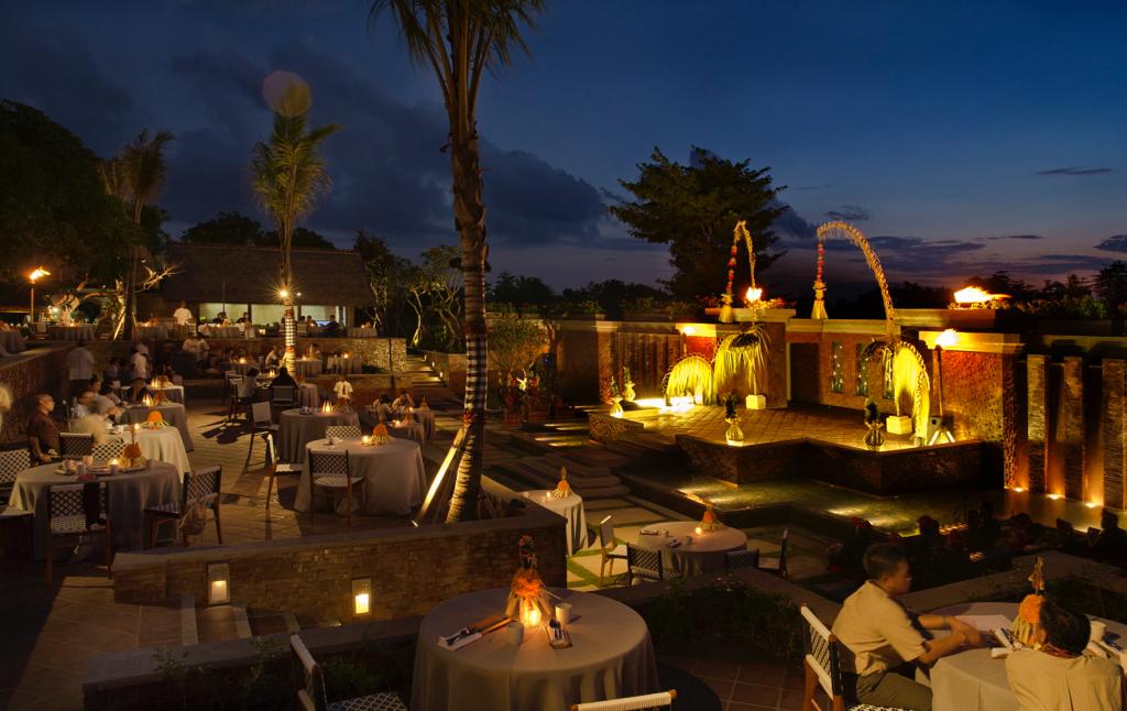 Saat makan malam, pertunjukan tari Kecak selama 40 menit dimulai pada pukul 7 malam. Sebuah bentuk khas dari tarian tradisional Bali yang sering ditampilkan dalam pameran budaya dan festival, tari Kecak akan dibawakan oleh sekelompok penari laki-laki, yang memanfaatkan vokalisasi dan nyanyian ritmis sebagai pengganti alat musik konvensional.