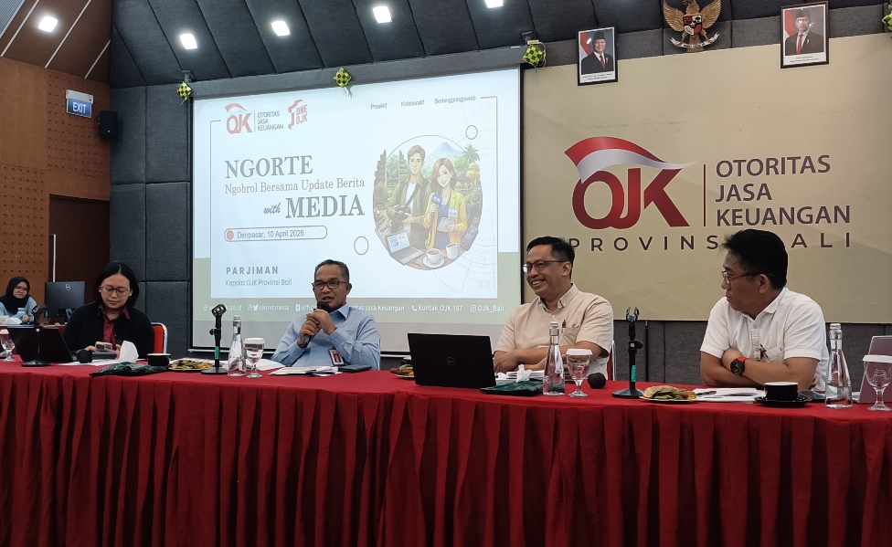 Hal tersebut disampaikan oleh Parjiman, Kepala Otoritas Jasa Keuangan (OJK) Provinsi Bali didamlingu Irhamsah – Kepala Direktorat Pengawasan Perilaku Pelaku Usaha Jasa Keuangan, Edukasi, Pelindungan Konsuman dan Layanan Manajemen Strategis OJK Provinsi Bali; Ni Made Novi Susilowati / Kepala Divisi Pengawasan Lembaga Jasa Keuangan 3 OJK Provinsi Bali dan Zulkifli / Kepala Divisi Pengawasan Lembaga Jasa Keuangan 4 OJK Provinsi Bali di Denpasar pada Jumat, 10 April 2026.