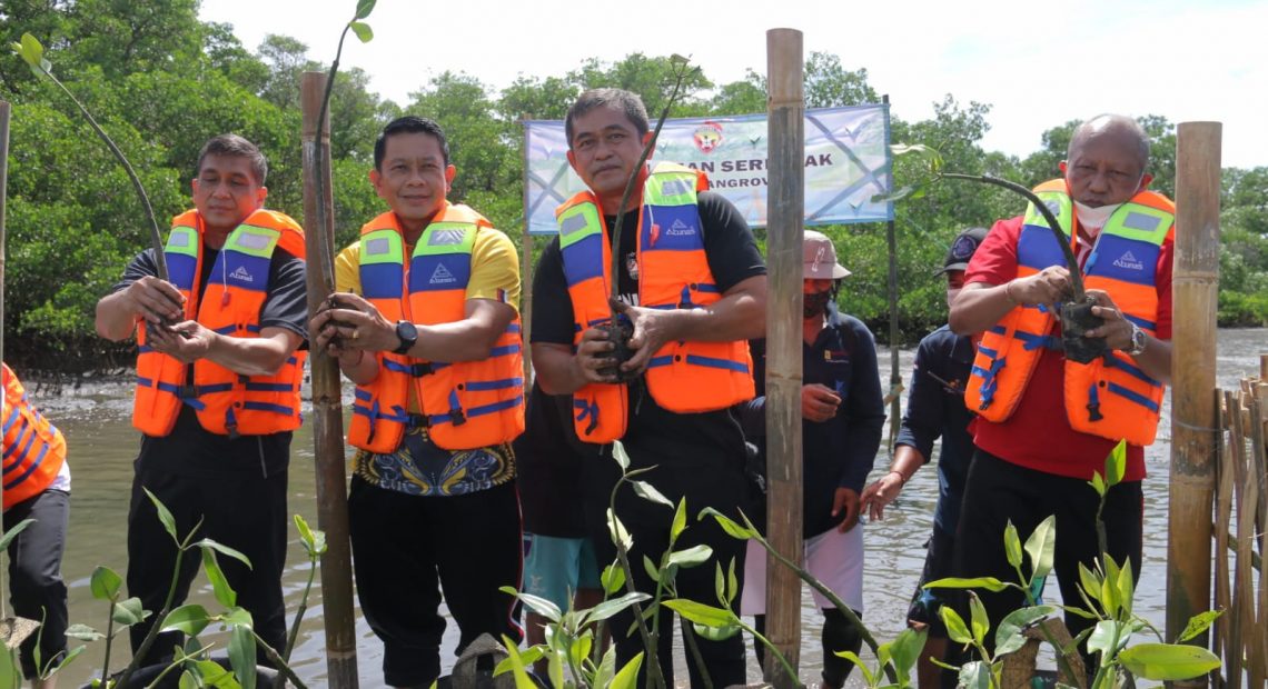 Salahsatu wujud program Gejala, pada Selasa, (28/12/2021). Pangdam IX/Udayana Mayjen TNI Maruli Simanjuntak, M.Sc., bersama instansi terkait melaksanakan kegiatan seremonial penanaman Pohon Mangrove di Taman Wisata Mangrove Balai Pengendalian Perubahan Iklim dan Karhutla (BPPIK) Wilayah Jawa, Bali-Nusra, Jalan By Pass Ngurah Rai, Desa Pemogan, Kecamatan Denpasar Selatan.