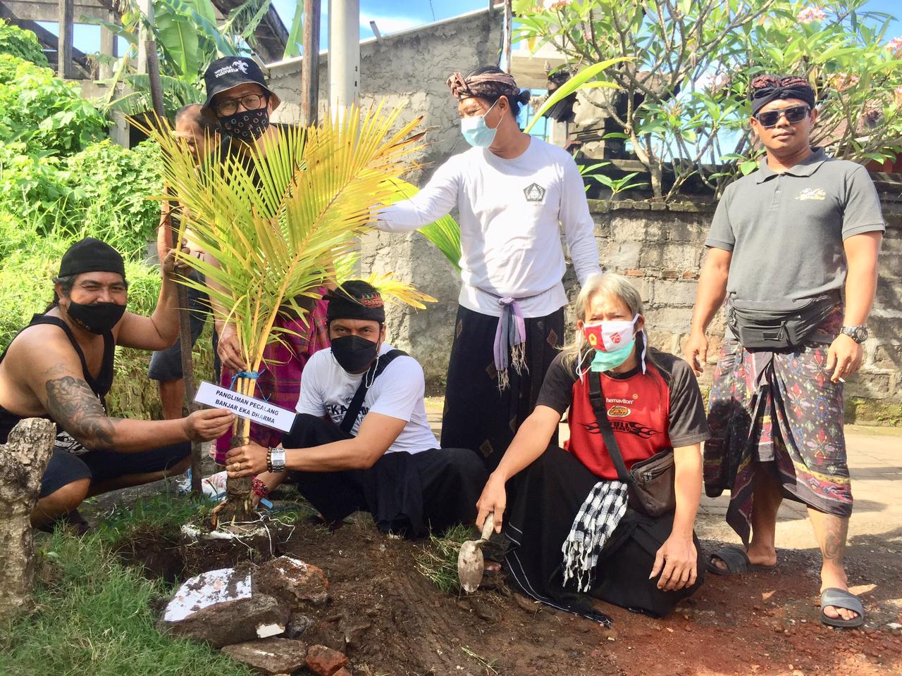 Dikatakan, pohon yang ditanam ada beberapa jenis pohon diantaranya Nyuh Bulan, Nyuh Gading dan Jempiring yang jumlahnya mencapai puluhan pohon.