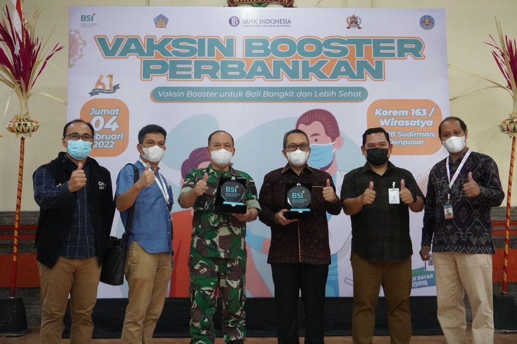 DENPASAR, lintasbali.com – Kantor Perwakilan Bank Indonesia Provinsi Bali bekerjasama dengan PT Bank Syariah Indonesia Provinsi Bali serta Komando Resor Militer (Korem) 163/Wira Satya terus menggalakkan seruan vaksinasi tahap ketiga atau booster bagi masyarakat.