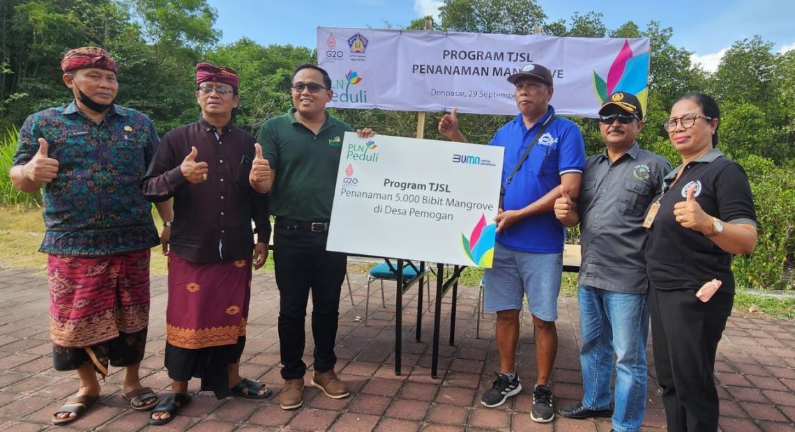 Bantuan 5.000 bibit mangrove diserahkan langsung oleh Manager Komunikasi dan TJSL PT PLN (Persero) Unit Induk Distribusi Bali, I Made Arya kepada Kelompok Nelayan KUB Simbar Segara, Denpasar, Kamis (29/09).
