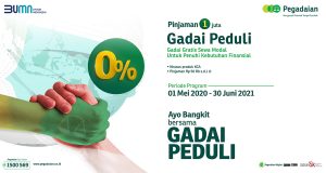 JAKARTA, lintasbali.com – PT Pegadaian (Persero) memperpanjang program Gadai Peduli yakni gadai tanpa bunga (bunga 0%) untuk pinjaman kurang dari Rp 1 juta, sampai tanggal 30 Juni 2021.