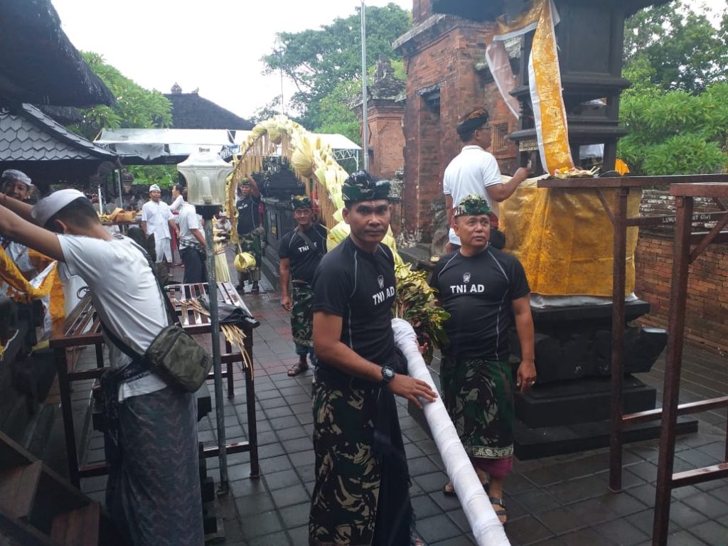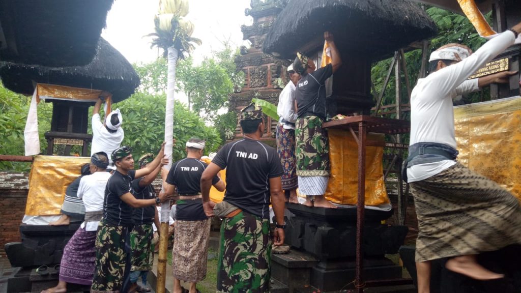 Dirinya beserta Anggota Koramil 1619-04/Kediri turut berpartisipasi dalam rangka mempersiapkan Pujawali/Piodalan tersebut sebagai wujud pengabdian keberadaan kita di tengah-tangah masyarakat untuk bisa membantu masyarakat dalam setiap kegiatan termasuk dalam kegiatan keagamaan.