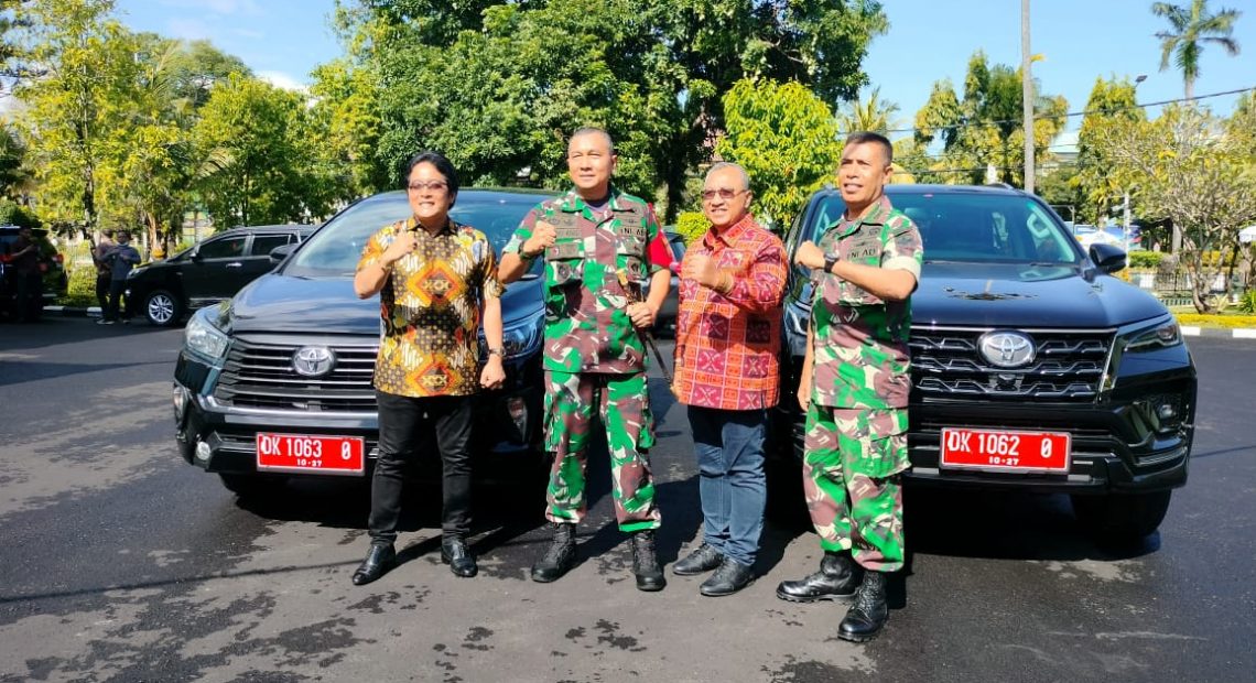 DENPASAR, lintasbali.com – Korem 163/Wira Satya menerima Hibah 2 (Dua) Unit Kendaraan roda empat dari Pemerintah Kabupaten Badung yang diserahkan langsung oleh Bupati Badung I Nyoman Giri Prasta, S.Sos., kepada Danrem 163/Wira Satya Brigjen TNI Choirul Anam, S.E., M.M., pada Jumat, 4 November 2022 bertempat di Loby Korem 163/Wira Satya, Denpasar.
