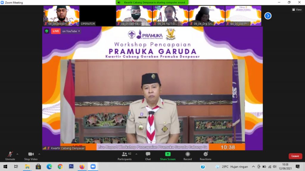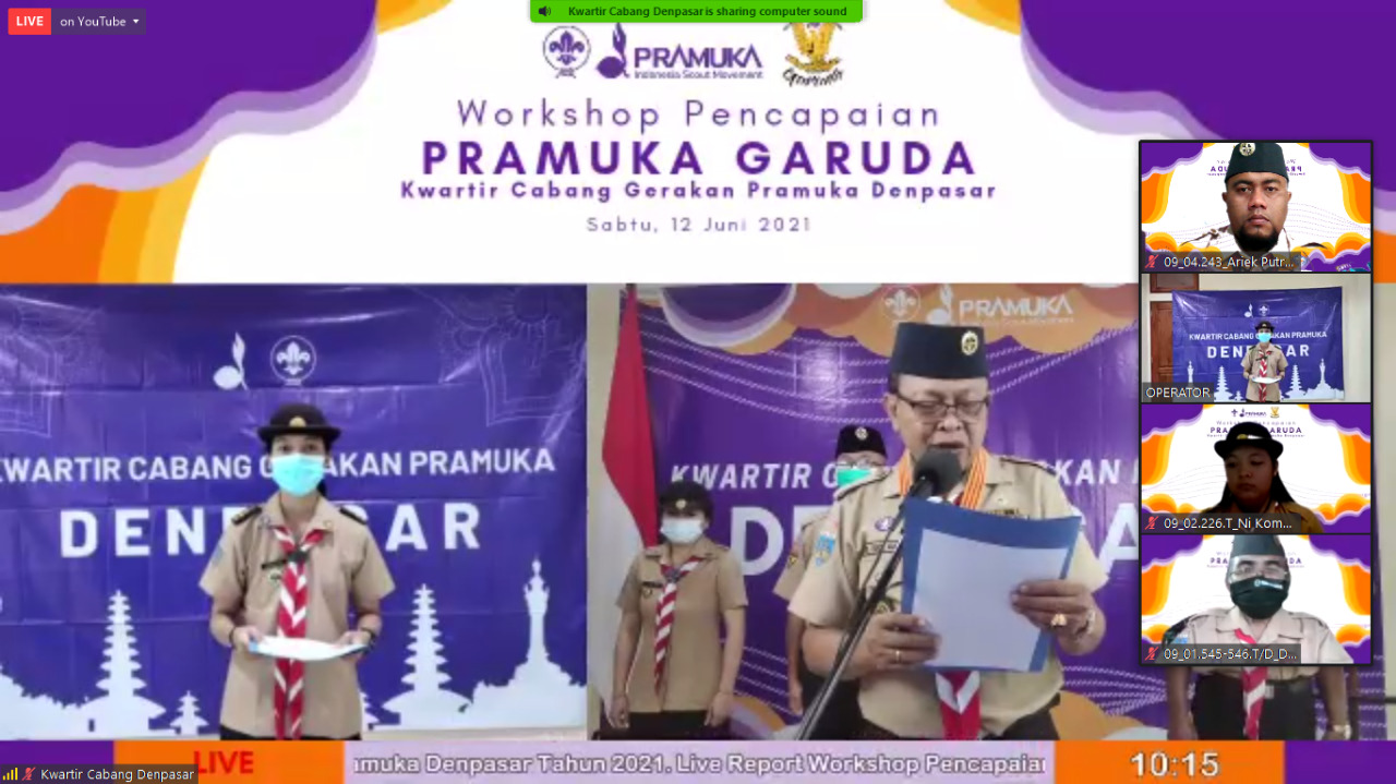 Workshop Pencapaian Pramuka Garuda Kwartir Cabang Gerakan Pramuka Denpasar dilaksanakan dengan metode Luring dan Daring diikuti oleh peserta dari Kwarda, Kwarcab se-Bali (Buleleng, Jembrana dan Badung), Kwarran se-Denpasar, Pembina Satuan Penggalang dan Pembina Satuan Penegak/Pandega se-Denpasar. Ada pula partisipan dari Jawa Timur, Jawa Barat, DKI Jakarta dan Sumatera Utara.