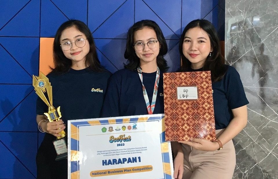 MALANG, LintasBali.com – Mahasiswa program studi Sarjana Ekonomi Pembangunan Fakultas Ekonomi dan Bisnis Universitas Udayana yaitu Srikandi Team yang terdiri dari Anak Agung Made Dinda Riana Dewi, Ni Gusti Ayu Dwi Widyari, dan Ni Kadek Ambara Putri telah berhasil memperoleh juara harapan I dalam ajang perlombaan National Business Plan Competition Economy Festival 2023 yang diselenggarakan di Auditorium Fakultas Ekonomi UIN Maulana Malik Ibrahim Malang yang dilaksanakan pada 18 November 2023.