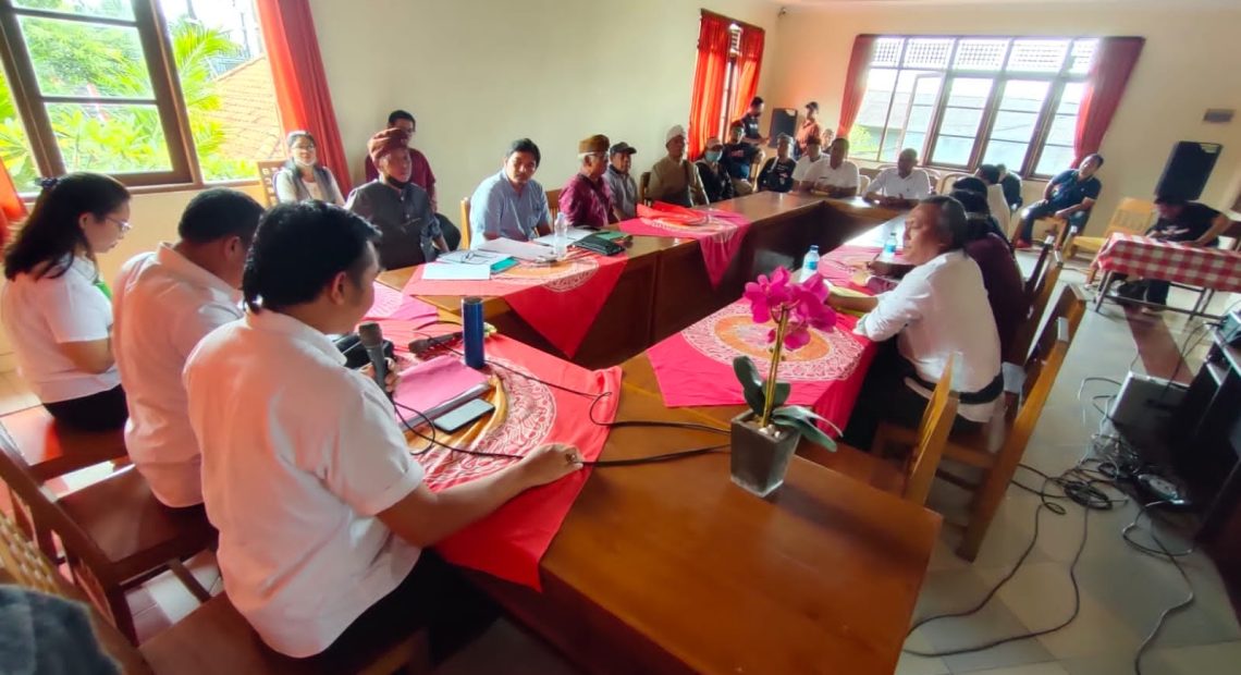 Suasana mediasi sengketa lahan antara Puri Sayan dengan warga di Banjar Baung diprakarsai Kakantah Gianyar Made Sumadra di Kantor Perbekel Desa Sayan, Kecamatan Ubud, Kabupaten Gianyar, Rabu, 12 April 2023