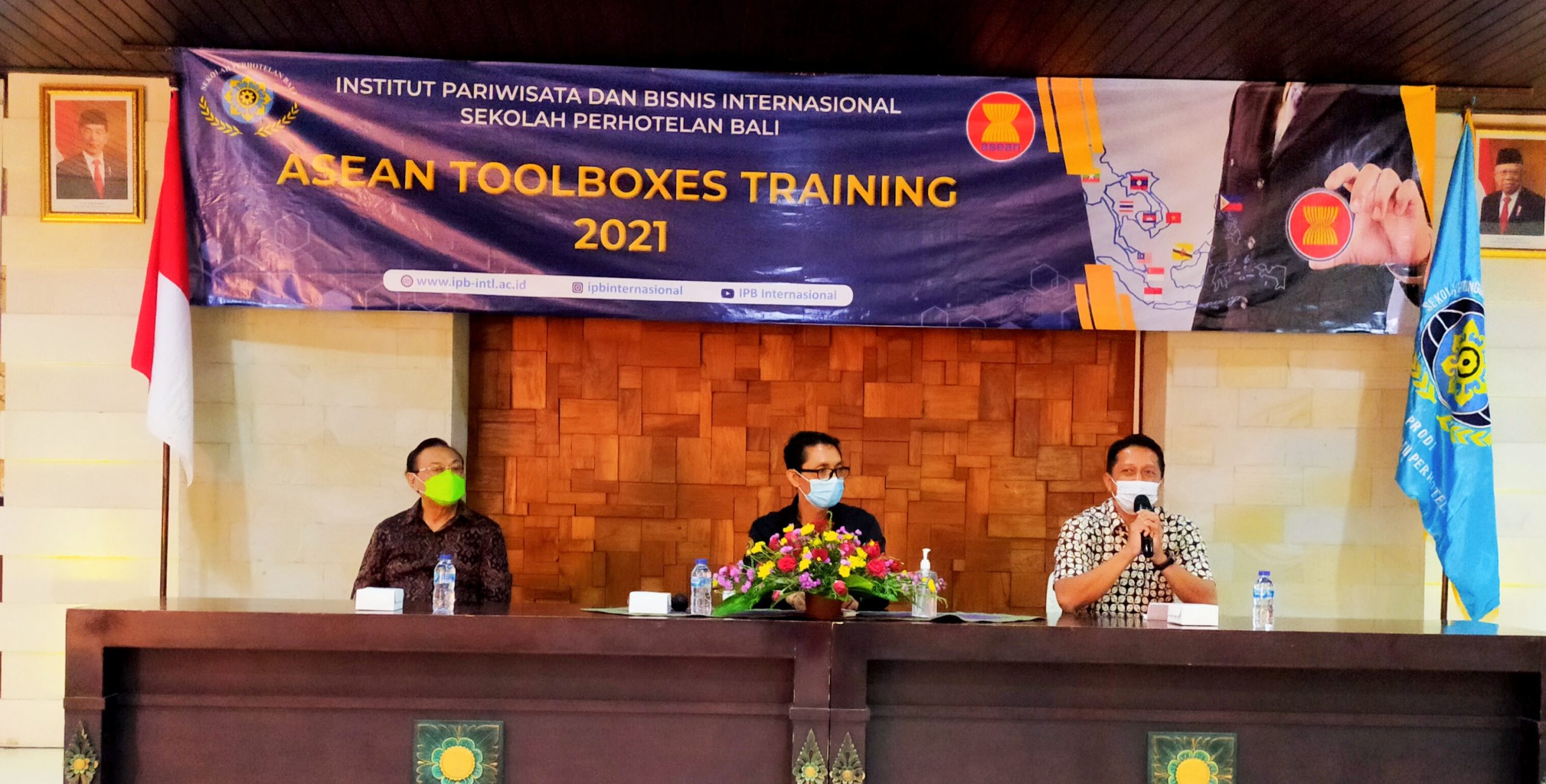 Menyadari pentingnya kegiatan tersebut sekaligus mendukung program pemerintah dalam rangka peningkatan kualitas SDM pariwisata Indonesia, Sekolah Perhotelan Bali (SPB) dan Institut Pariwisata dan Bisnis Internasional (IPBI) menggelar Workshop ASEAN Toolboxes Training Jumat (7/5/2021) bertempat di Auditorium IPB Internasional dengan tetap menerapkan protokol kesehatan dengan ketat.