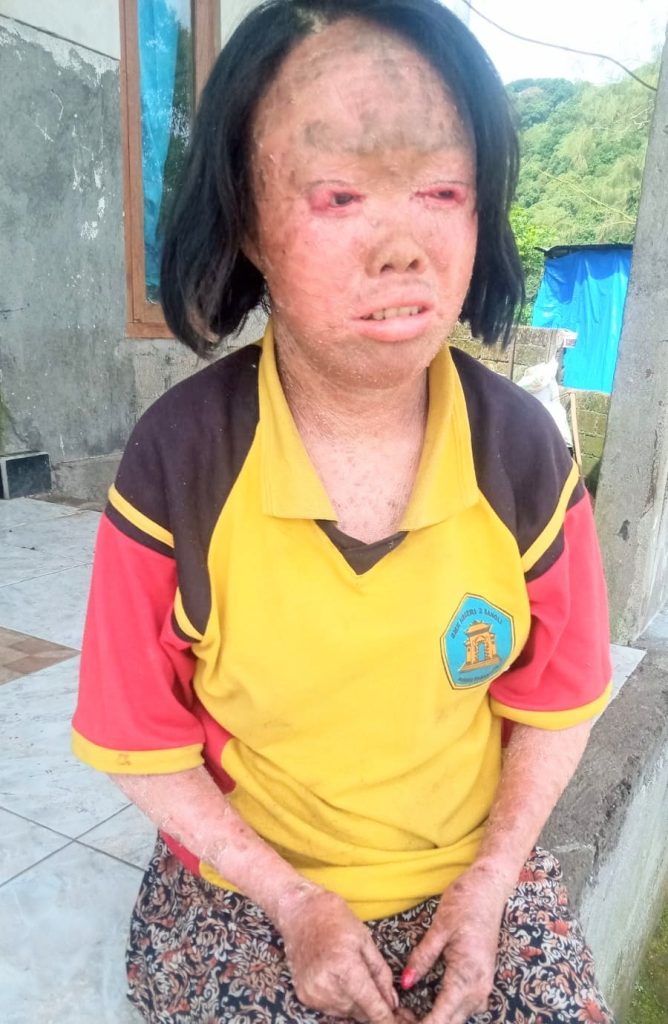 BANGLI, LintasBali.com – Nasib Putu Malini makin memprihatinkan. Di usianya yang ke-23 tahun ini, ia hanya bisa berdiam saja di rumah karena kondisi tubuhnya yang cacat. Selain kulitnya yang melepuh, anak pertama dari enam bersaudara ini sulit bisa berjalan karena pertumbuhan yang lambat.