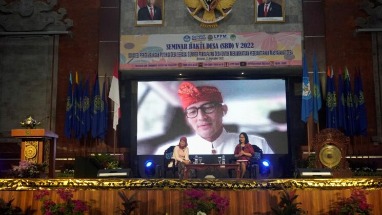 Mangupura – Menteri Pariwisata dan Ekonomi Kreatif, Dr. H. Sandiaga Salahuddin Uno, BBA., MBA., menghadiri secara virtual Seminar Bhakti Desa (SBD) ke V Tahun 2022 via Webex, pada Jumat (23/9/2022).