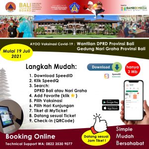 Untuk mengakomodir tingginya animo masyarakat mendapatkan vaksin serta menghindari terjadinya kerumunan maka Pemprov Bali telah meluncurkan aplikasi online SpeedID. Aplikasi ini akan membantu masyarakat untuk proses pendaftaran vaksinasi dimana masyarakat dapat memilih jadwal kunjungan serta datang sesuai dengan jam kunjungan yang tercantum didalam tiket.