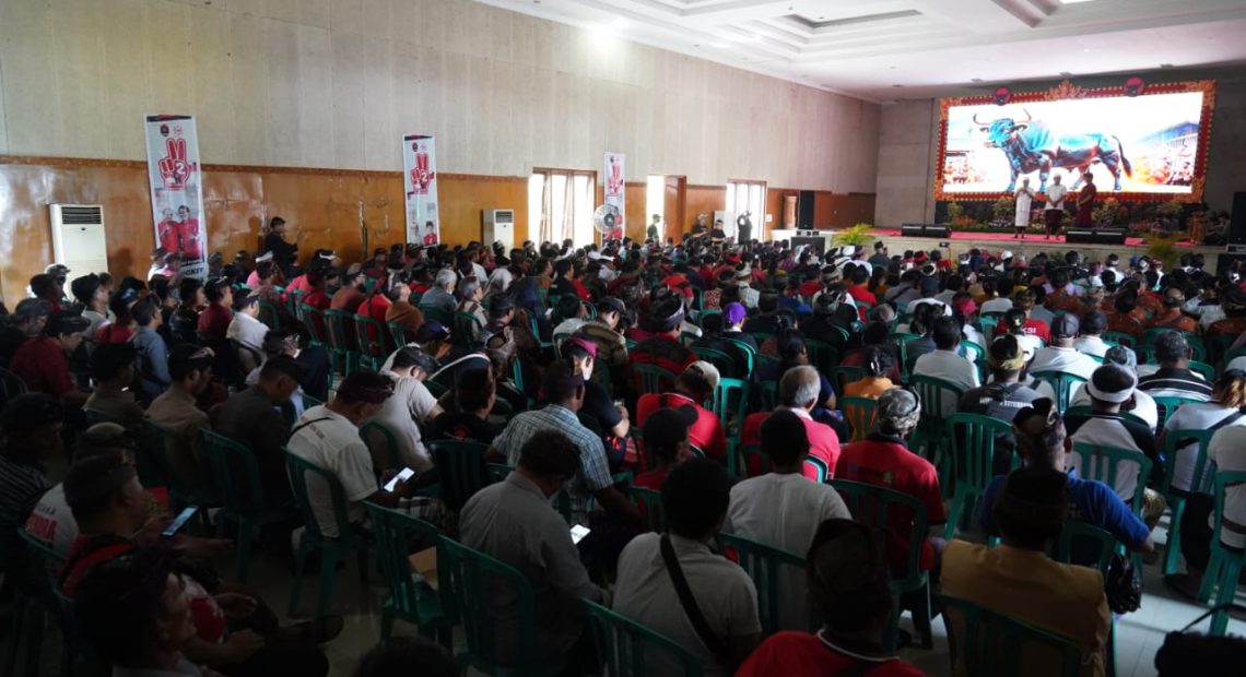 BULELENG, lintasbali.com – Gedung Imaco Kelurahan Banyuasri Kecamatan Buleleng penuh sesak. Sekitar 1500 krama Buleleng hadiri simakrama paslon Gubernur dan Wakil Gubernur Bali nomor 2 Wayan Koster dan Giri Prasta (Koster-Giri) dan Paslon Bupati Buleleng nomor 2 Nyoman Sutjidra dan Gede Supriatna (Sutjidra-Supriatna), Kamis 21 November 2024.