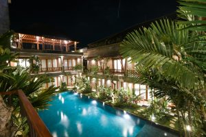 Suasana Purana Suite Ubud pada malam hari