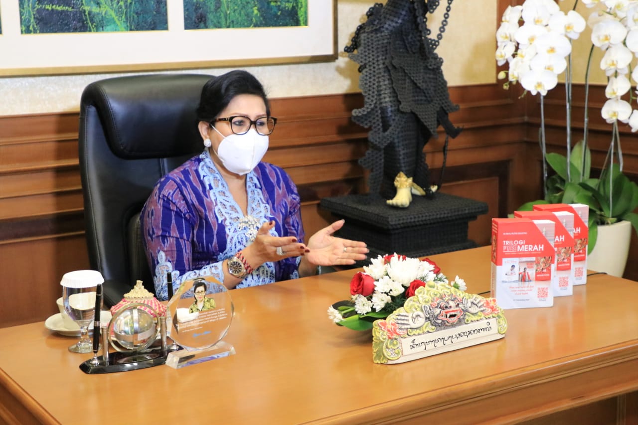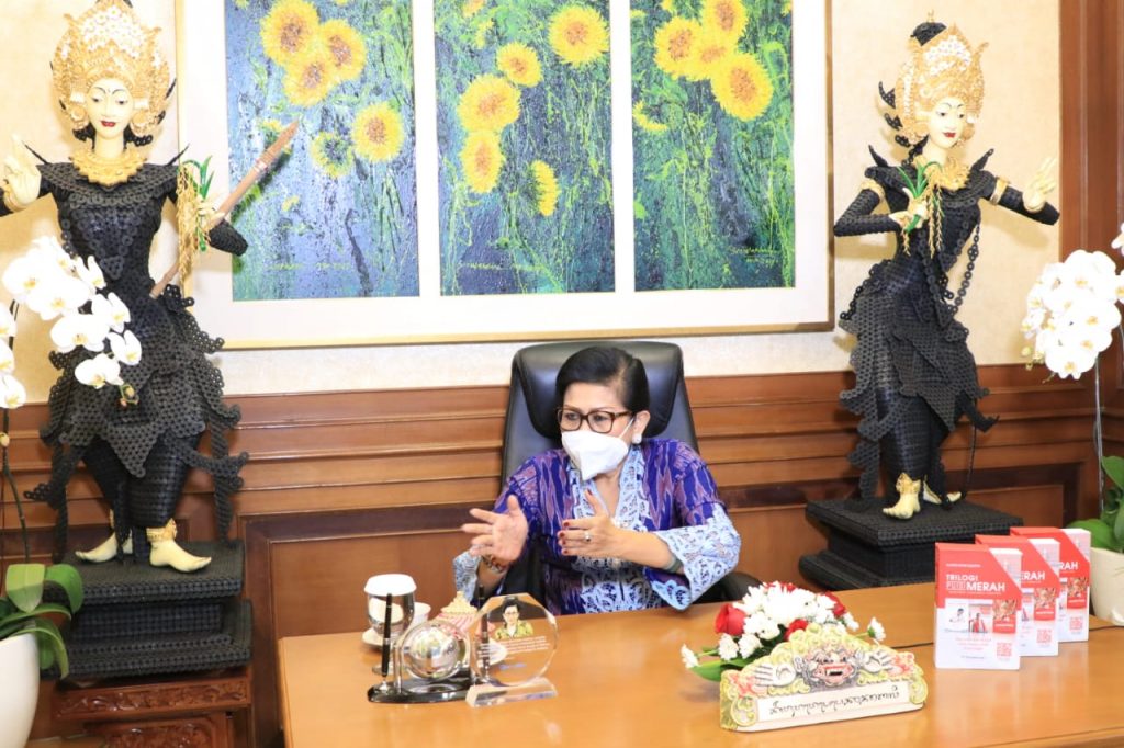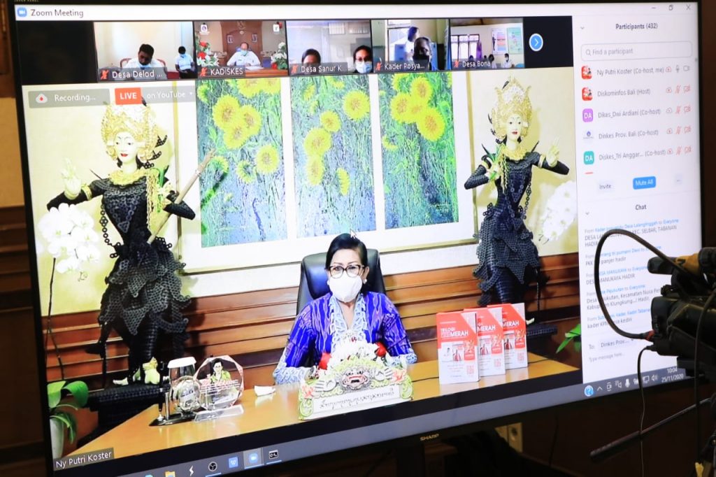 Denpasar, Lintasbali.com – Ketua TP PKK Prov Bali Ny Putri Koster berkesempatan menjadi keynote speaker dalam webinar Hari Kesehatan Nasional ke-56 dengan tema ‘Pemberdayaan Masyarakat dalam Penanganan Stunting’, Denpasar, Rabu (25/11). Dalam acara yang juga menghadirkan Kepala Dinas Kesehatan dr Ketut Suarjaya dan Kepala Dinas Pemberdayaan Masyarakat Desa Putu Anom Agustina, Ny Putri Koster mengingatkan pentingnya gaya hidup sehat untuk mencegah stunting sejak dini.