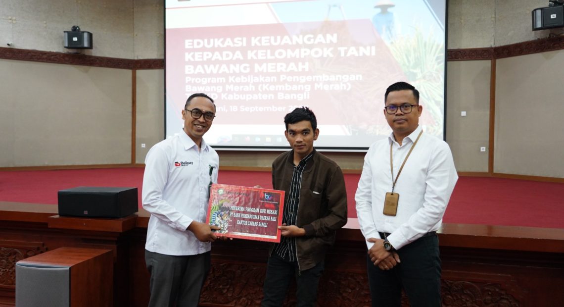 Pada kesempatan yang sama juga dilakukan penyerahan KUR dari PT BPD Bali Cabang Bangli kepada tiga anggota kelompok tani bawang merah – Kelompok Tani Sejahtera dengan total dana Rp30.000.000,-. Dana KUR diserahkan secara simbolis oleh I Gede Redika, Staf Ahli Bidang Kemasyarakatan dan Sumber Daya Manusia, Setda Kabupaten Bangli; I Gusti Bagus Adi Wijaya, Kepala Bagian Edukasi dan Perlindungan Konsumen OJK Regional 8 Bali dan Nusa Tenggara, dan Ida Bagus Purwa Pidada, Kepala PT BPD Bali Cabang Bangli. Kegiatan ini dihadiri oleh 210 petani.