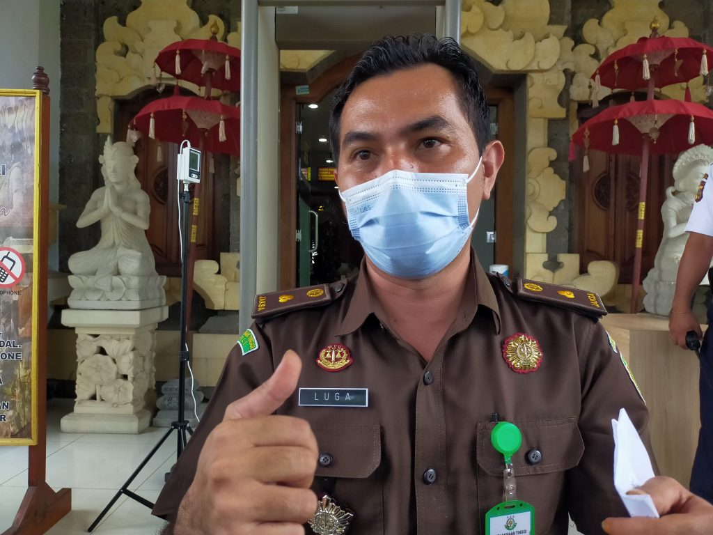 Kepala Seksi Penerangan Hukum (Kasipenkum) Kejati Bali, A Luga Harlianto saat memberikan keterangan pers di Kejari Denpasar, Rabu (24/3/2021)