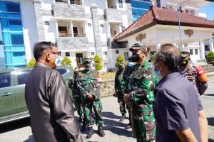 Kegiatan kunjungan yang dilaksanakan pada Senin (26/7/2021) tersebut, Pangdam IX/Udayana Mayjen TNI Maruli Simanjuntak, M.Sc., menyampaikan terkait tentang pelaksanaan tracing sesuai yang sudah diputuskan oleh Pemerintah Pusat khususnya tentang pelaksanaan tracing supaya dikoordinir oleh TNI dan Polri dengan Dinas Kesehatan.