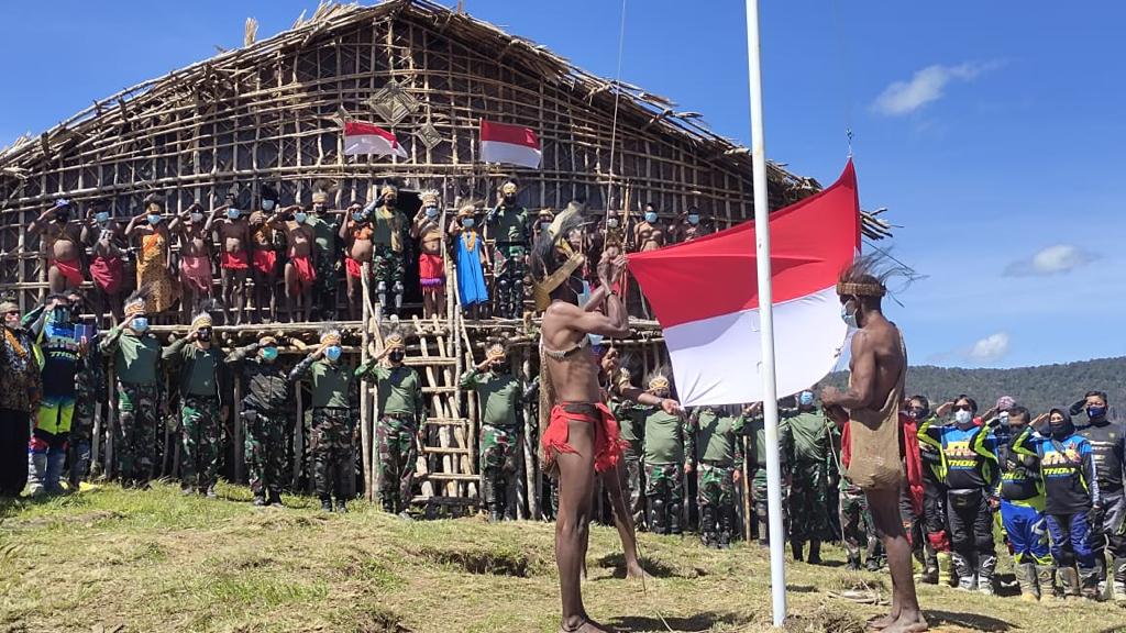 Setelah menerima bendera, tiga kepala suku tersebut langsung mengibarkan bendera melalui upacara yang dipimpin Pangdam dan diikuti oleh warga sekitar dan rombongan dari Kodam XVIII Kasuari.