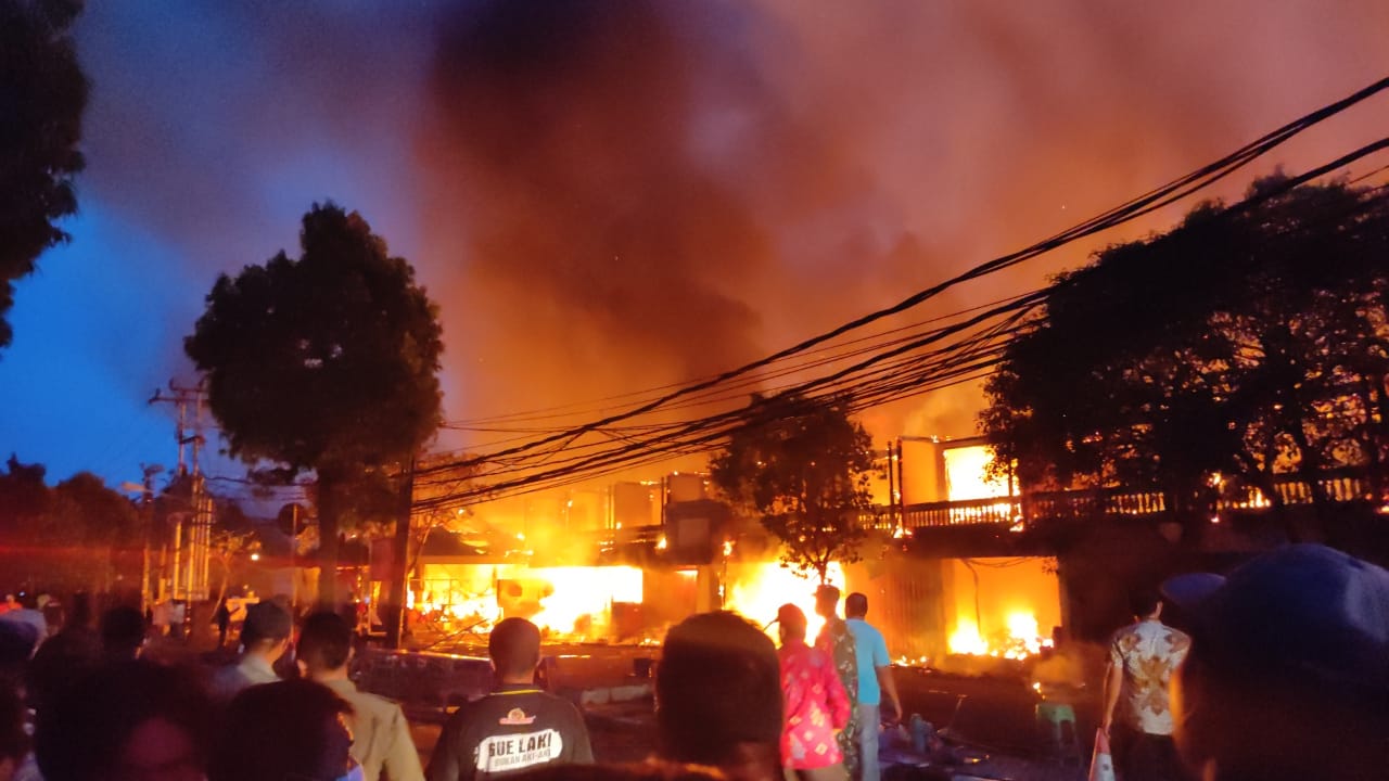 Api begitu cepat merembet ke semua bangunan pasar. Belum diketahui dari mana sumber api berasal. Situasi sangat mencekam. Arus lalulitas dari arah barat timur utara ditutup. Petugas pemadam sempat kesulitan akses, sebab ribuan warga berjejal memadati jalan lantaran penasaran.