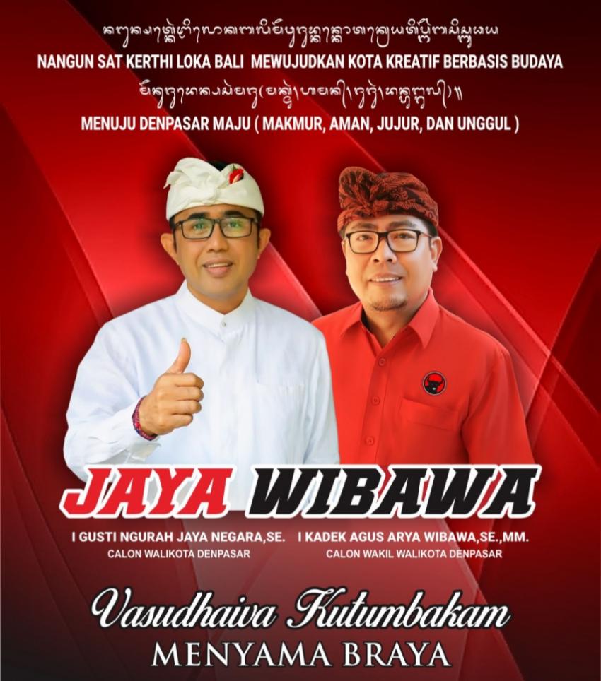 PBB Denpasar mendukung Pasangan Calon Jaya Wibawa yang mendapat urut no 1 dengan visi misi Kota Kreatif Berbasis Budaya menuju Denpasar MAJU (Makmur, Aman, Jujur, Unggul) yang memang sudah menjadi konsen Jaya-Wibawa sejak awal dalam rangka membangun Kota Denpasar.