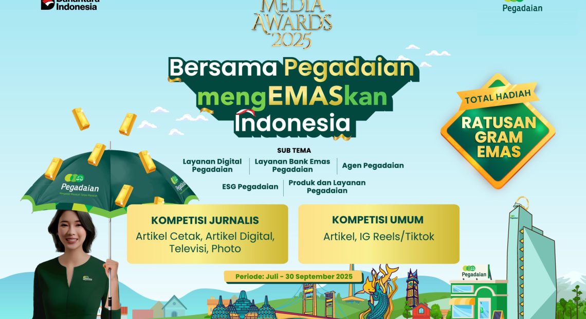 JAKARTA, lintasbali.com – PT Pegadaian dengan bangga mengumumkan kembali diselenggarakannya Pegadaian Media Awards 2025 (PMA 2025). Dengan mengusung tema besar ‘Bersama Pegadaian mengEMASkan Indonesia’, kompetisi jurnalistik tahunan ini kini membuka pintu lebih lebar, tidak hanya untuk para jurnalis, tetapi juga bagi masyarakat umum yang memiliki bakat dan kreativitas dalam mengolah tulisan, foto, maupun konten digital.