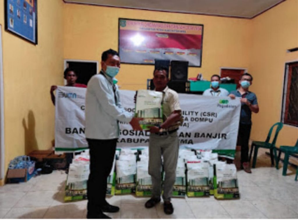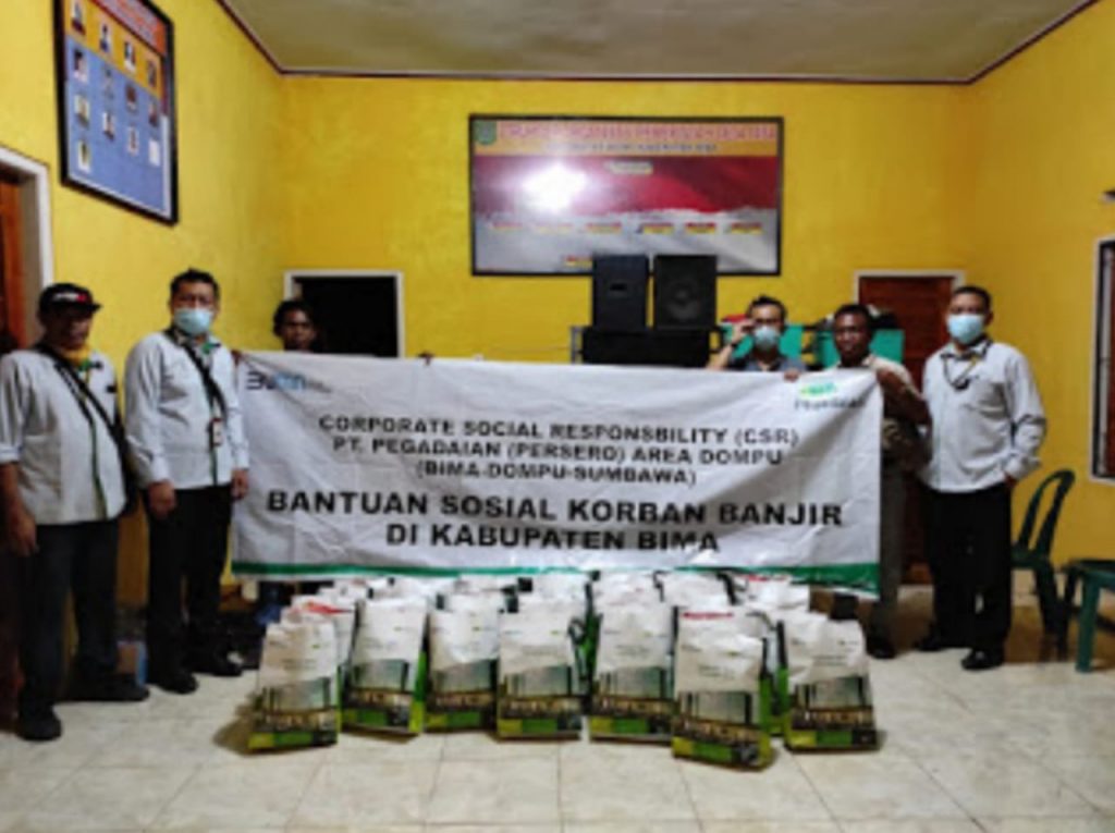 Terhadap musibah ini, Sebagai bentuk empati dan kepedulian terhadap masyarakat di Kabupaten Bima – NTB yang terdampak banjir beberapa hari lalu, PT Pegadaian (Persero), setelah berkoordinasi di lapangan, melakukan assessment serta bantuan darurat langsung yaitu untuk di area Dompu (NTB), diserahkan Di Desa Nisa Kecamatan Woha yang berdekatan dengan Pegadaian Cabang Tente yang terdampak cukup serius akibat banjir.