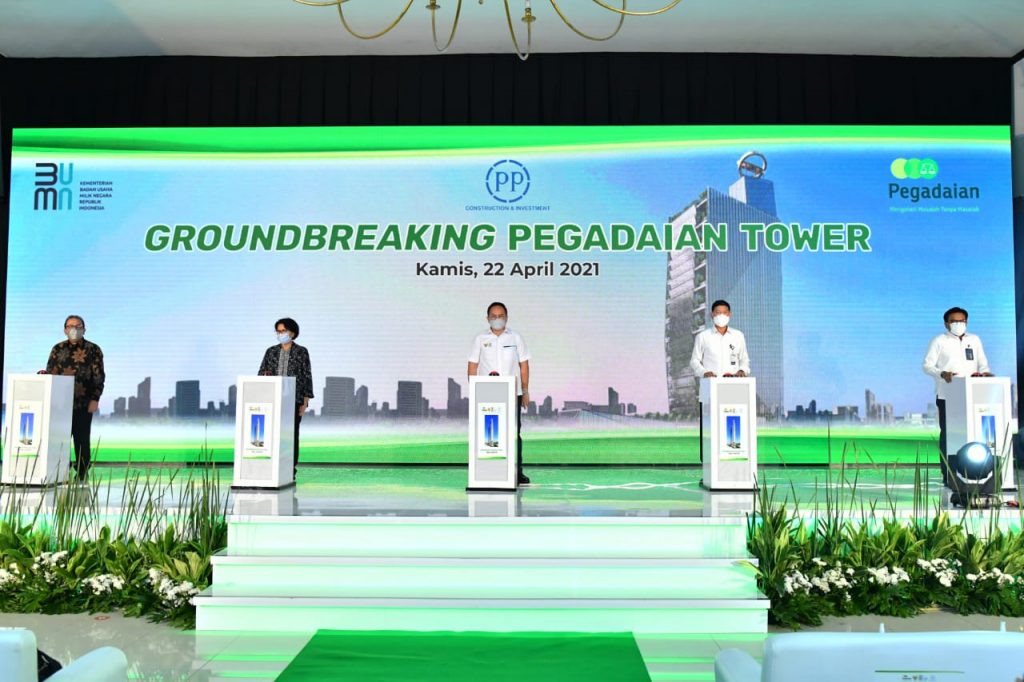 Seremonial Groundbreaking gedung tersebut dilakukan pada Kamis (22/04/2021) oleh Wakil Menteri BUMN II Kartika Wirjoatmodjo, didampingi Komisaris Utama Pegadaian Loto Srinaita Ginting, Direktur Utama Pegadaian Kuswiyoto, Direktur Utama PT PP (Persero) Tbk. Novel Arsyad dan Direktur Umum Pegadaian Gunawan Sulistyo.
