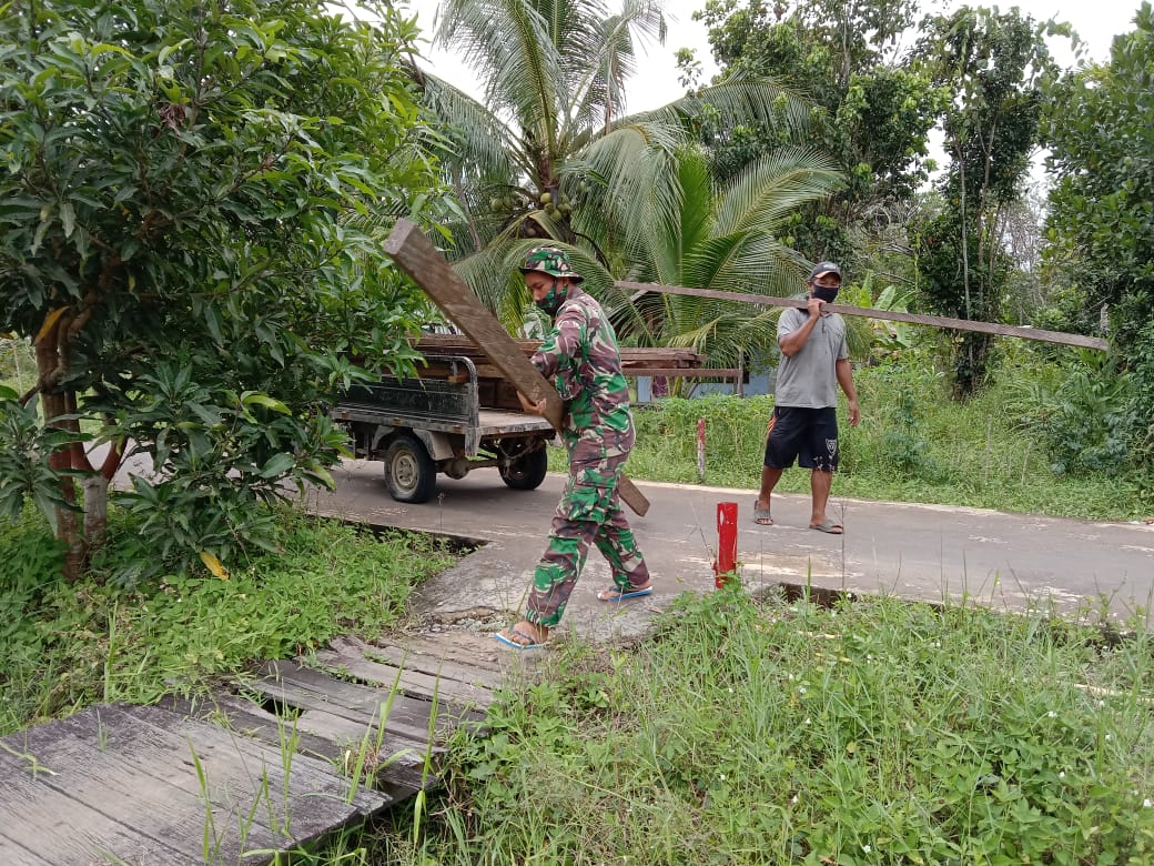 Babinsa Kodim 1015/Spt dalam Satgas TMMD di sela waktu luang melakukan komunikasi sosial bersama warga dan mensosialisasikan perilaku hidup sehat dan mematuhi protokol pencegahan COVID-19.