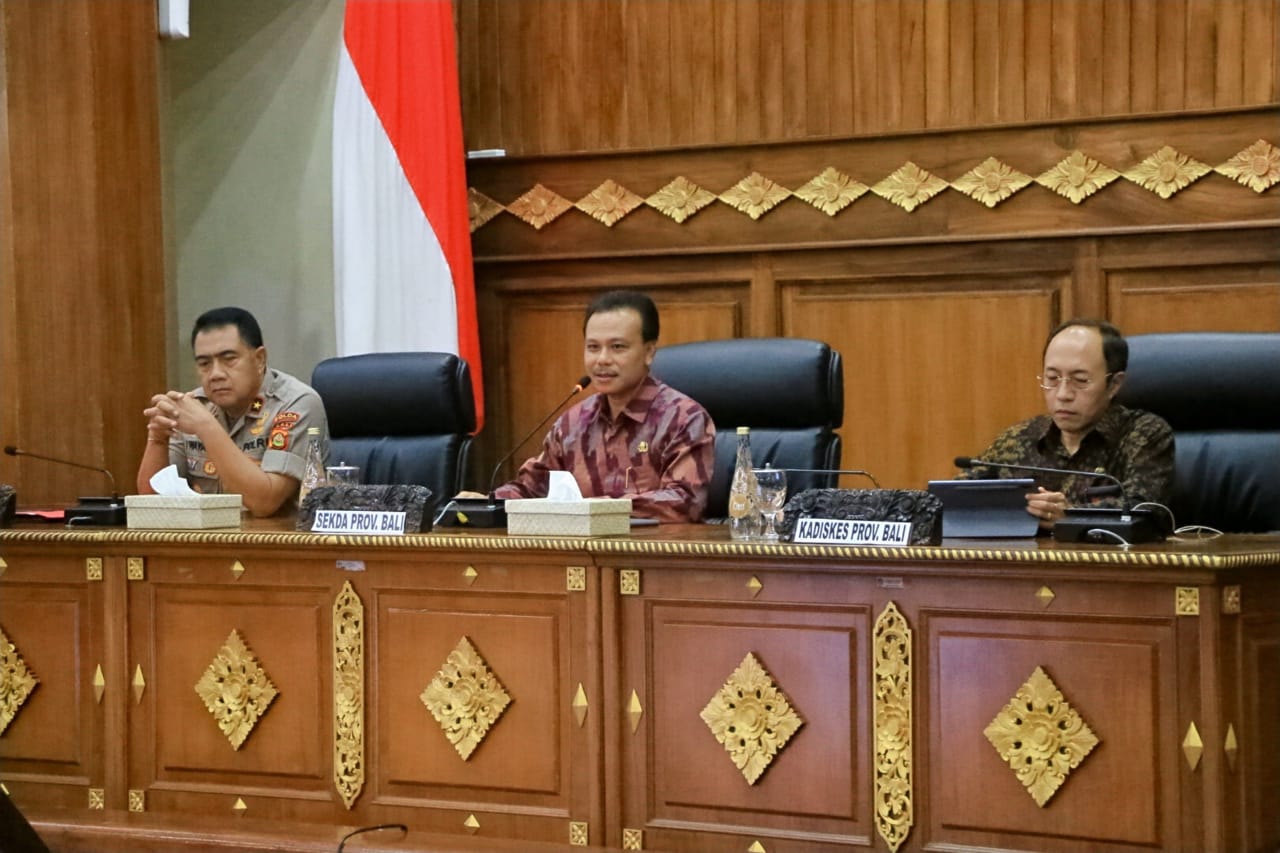 Sementara itu, Wakapolda Bali Brigjen (Pol) I Wayan Sunartha pada kesempatan Rakor itu menyampaikan dukungan penuh terhadap upaya penanggulangan penyebaran COVID-19 di Provinsi Bali. Polda Bali telah memerintahkan anggotanya untuk menindak tegas oknum yang menimbun alat kesehatan seperti masker, hand sanitizer dll.