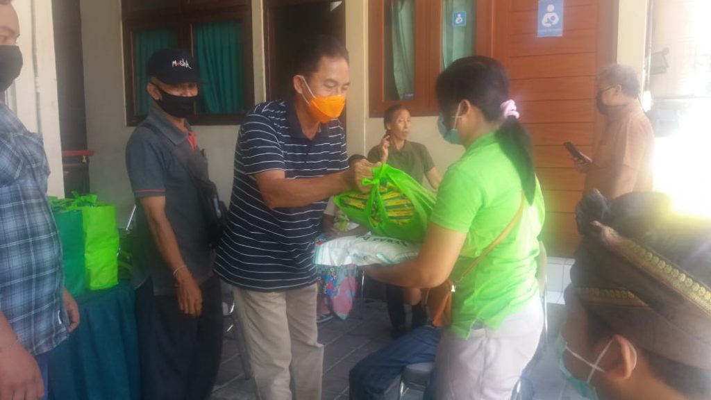 Penyerahan bantuan sembako kepada keluarga kurang mampu dan terdampak Covid 19 di wilayah Kelurahan Padangsambian, Kamis (23/4).