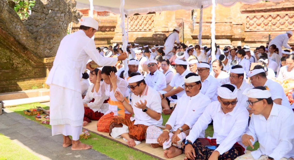Lantunan doa dan kidung suci mengalun khidmat, mengiringi umat yang memenuhi areal pura. Tampak pula para siswa sekolah turut hadir, khusyuk memohon tuntunan ilmu pengetahuan, kebijaksanaan, serta keselamatan bagi kehidupan masyarakat Kota Denpasar.