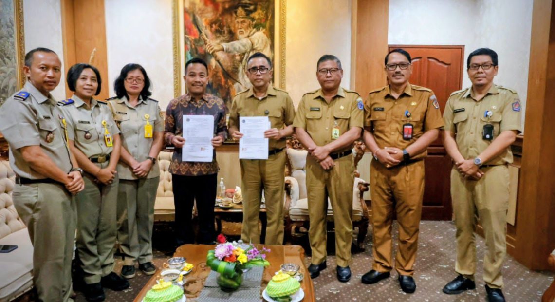 DENPASAR, lintasbali.com – Kementerian Agraria dan Tata Ruang/Badan Pertanahan Nasional (ATR/BPN) Kantor Pertanahan Kota Denpasar Provinsi Bali menyerahkan 120 bidang tanah kepada Pemerintah Kota Denpasar. Penyerahan secara simbolis dilakukan oleh Kepala BPN Kota Denpasar, Yohanes Chrisostumus Fajar Nugroho Adi, ST., M.Sc kepada Wali Kota Denpasar, I Gusti Ngurah Jaya Negara, di saksikan Sekda Kota Denpasar IB Alit Wiradana di Kantor Wali Kota Denpasar, Senin, 11 Agustus 2025.