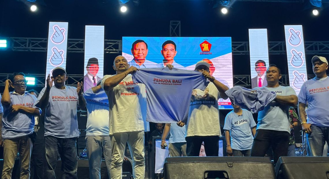Made Muliawan Arya Alisa De Gadjah (baju putih) saat deklarasi Pemuda Bali dukung Capres-cawapres Prabowo – Gibran.