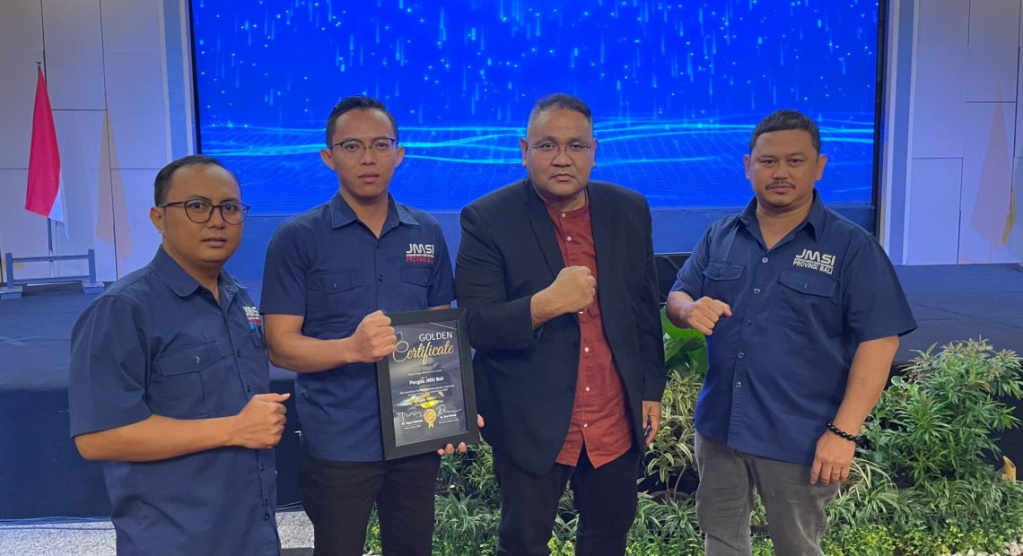 BANJARMASIN, lintasbali.com – Pengurus Daerah (Pengda) Jaringan Media Siber Indonesia (JMSI) Provinsi Bali diganjar penghargaan Pengda JMSI dengan performa terbaik. Penghargaan diserahkan langsung Ketua Umum JMSI, Dr. Teguh Santosa dalam rangkaian peringatan hari ulang tahun (HUT) ke-5 JMSI di Kota Banjarmasin, Kalimantan Selatan, Sabtu, 8 Pebruari 2025.