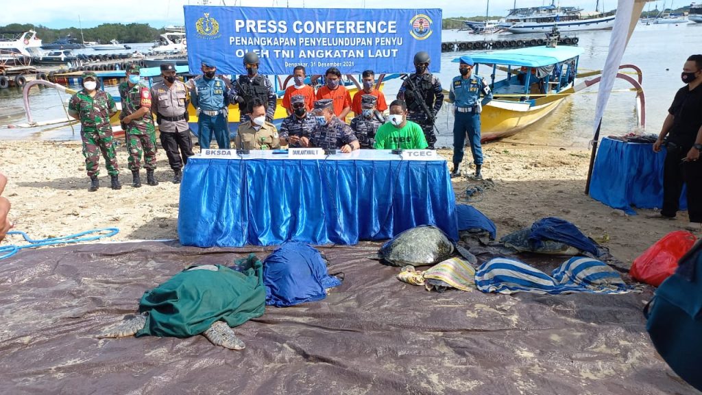 Saat ini, barang bukti berupa 32 ekor penyu hijau berukuran besar dan sedang, 3 buah Kapal Jukung, beserta 21 orang ABK telah diamankan di Lanal Denpasar Penangkapan dan penyelundupan penyu ini bukan kali pertama, sebelumnya Lanal Denpasar juga pernah menangkap pelaku yang melakukan penangkapan dan penyelundupan penyu pada tanggal 17 Maret 2019 di Dusun Banyuwedang, Desa Gerogak, Kab. Buleleng Bali.