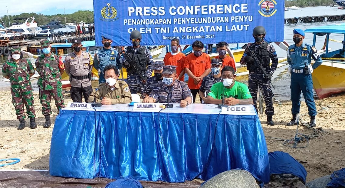 DENPASAR, lintasbali.com – Bertepatan dengan momentum HUT Ke-72 Lantamal V, sekaligus memasuki Penghujung Tahun 2021, Pangkalan Utama TNI Angkatan Laut (Lantamal) V jajaran Koarmada II, dalam hal ini Pangkalan TNI AL (Lanal) Denpasar, berhasil menggagalkan upaya penangkapan dan penyelundupan penyu hijau pada saat melaksanakan patroli di sekitar pantai dan perairan Serangan Bali, Kamis (30/12).