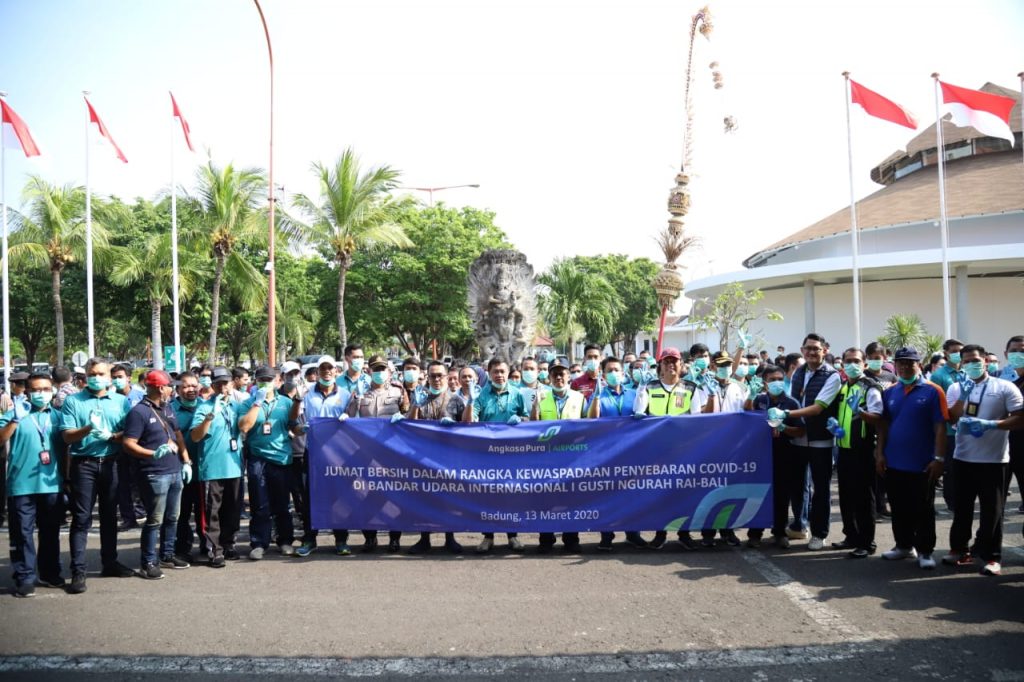 “Sebagai langkah kewaspadaan, kegiatan pembersihan yang kami laksanakan ini merupakan bentuk optimalisasi dari usaha pencegahan penyebaran Virus Corona yang ada di area bandar udara, khususnya untuk menumbuhkan kesadaran akan kesehatan dan kebersihan lingkungan. Hal ini pun juga merupakan bentuk dari komitmen kita semua sebagai warga bandar udara untuk mengantisipasi adanya penularan melalui bandar udara yang kita cintai ini,” ujar General Manager PT Angkasa Pura I (Persero) Bandar Udara Internasional I Gusti Ngurah Rai – Bali, Herry A.Y. Sikado.